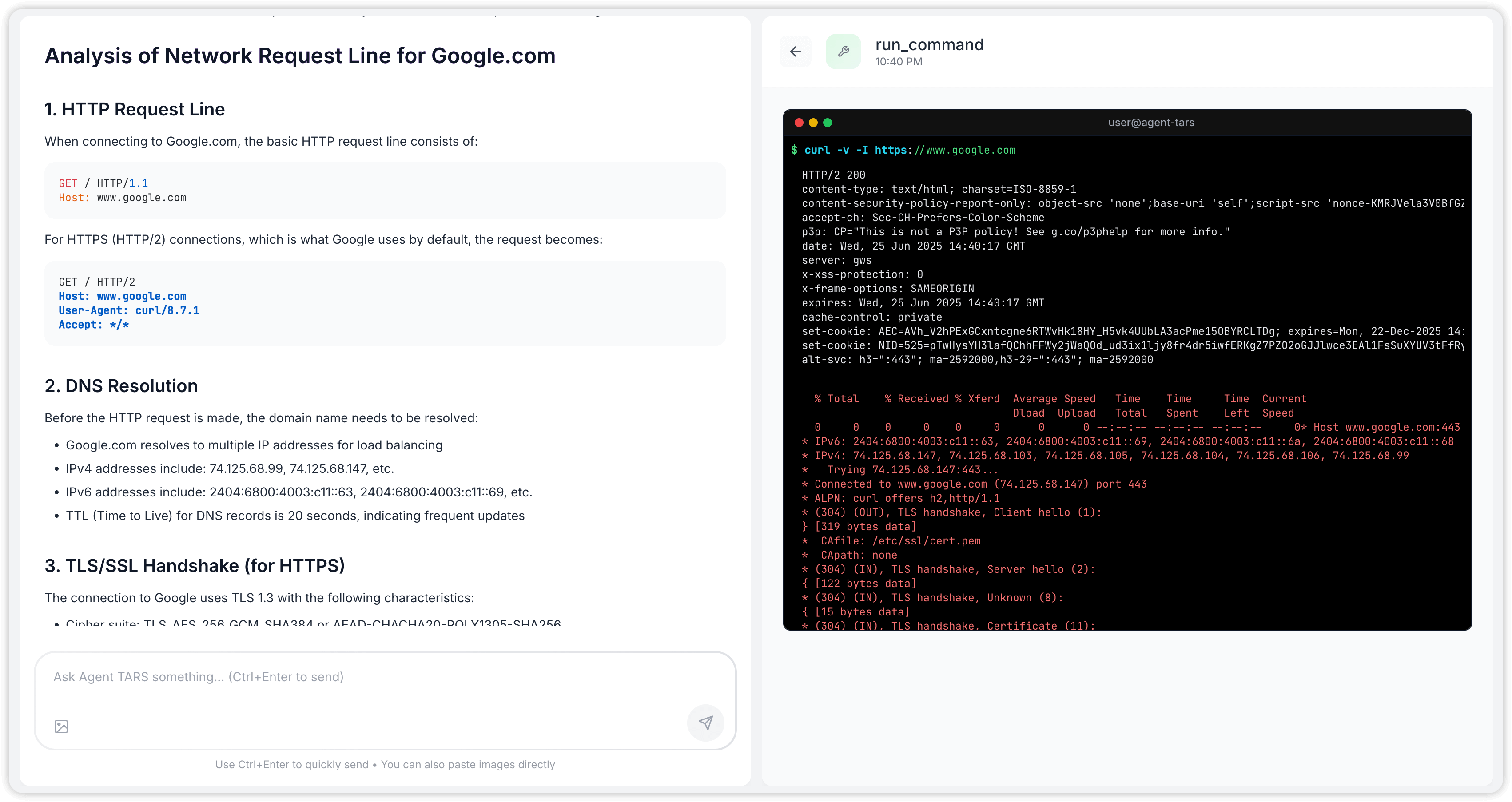 Now, with Agent TARS, you only need to focus on what problem you want to analyze: